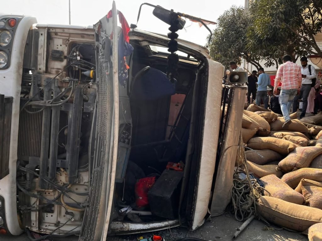 सरगुजा ज़िले में कानून व्यवस्था,परिवहन विभाग की सड़ांध मार रही व्यवस्था का नजारा आज ज़िला मुख्यालय अंबिकापुर में देखने को मिला।यहां बौरीपारा रिंग रोड पर क्षमता से भी काफी अधिक धान एक ट्रक में भरकर परिवहन किया जा रहा था। जब ये ट्रक बौरीपारा रिंग रोड में एक मोड़ पर था तो संतुलन खो बैठा और टर्निंग में ओवरलोड की वजह से पूरा ट्रक सड़क पर पलट गया।यह घटना दोपहर 2.30 बजे की है पास में एक स्कूल भी है।