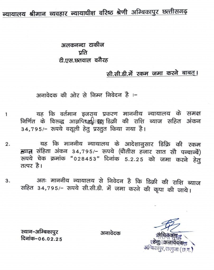 अविभाजित मध्य प्रदेश के समय पुराने एक महत्वपूर्ण मामले में सिंहदेव परिवार के स्वामित्व वाले अलकनंदा टॉकीज पर तत्कालीन सरगुजा कलेक्टर टी एस छतवाल पर जुर्माना।
