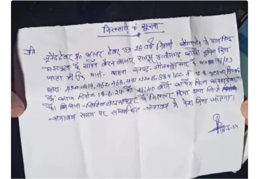 अनवर ढेबर के बेटे जुनैद को यूपी पुलिस ने एक पर्चा लिखकर जानकारी दी है वो अब चर्चा का विषय है।
