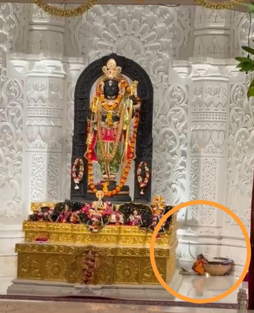 अयोध्या में एक नए चमत्कार से लोग चकित हैं!भगवान रामलला की भव्य आकर्षक मूर्ति के समक्ष अचानक गर्भ गृह में एक छोटा सा बानर पहुंच गया और रामलला के चरणों में बैठ गया!