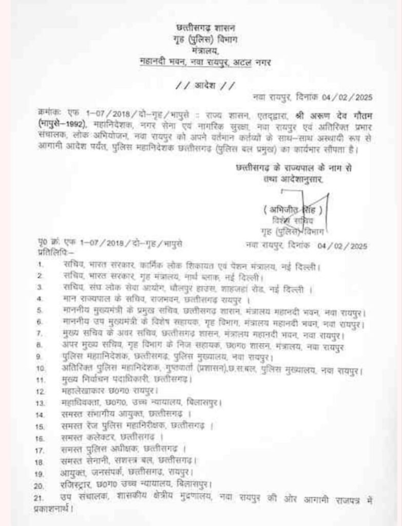 छत्तीसगढ के नए डीजीपी का प्रभार आईपीएस अरूण देव गौतम को सौंपा गया है।