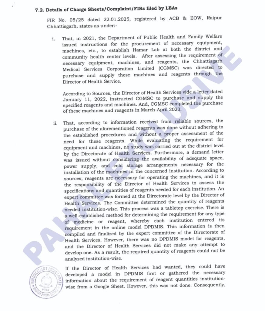 Eow/acb/की कार्यवाही के आधार पर अब केंद्रीय जांच एजेंसी ईडी ने भी छत्तीसगढ के बड़े मेडिकल घोटाले का मामला दर्ज कर लिया है। ईडी के द्वारा जो मामला दर्ज किया गया है उसकी कॉपी का भी अवलोकन करें।