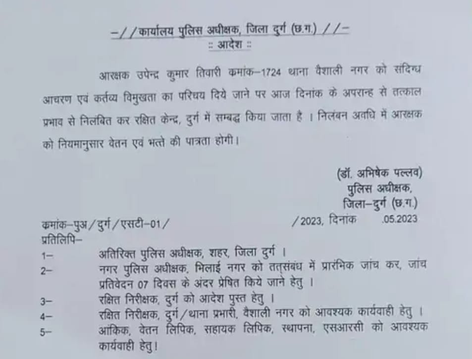 आरोपी आरक्षक मुख्यमंत्री व गृहमंत्री के ज़िले का है।महादेव एप जैसे विवादित एप सट्टे के लिए कमीशन बाजी की बात होनी बताई जा रही है।हालांकि एसपी ने इसे कल सामने आते ही निलंबित कर दिया है।