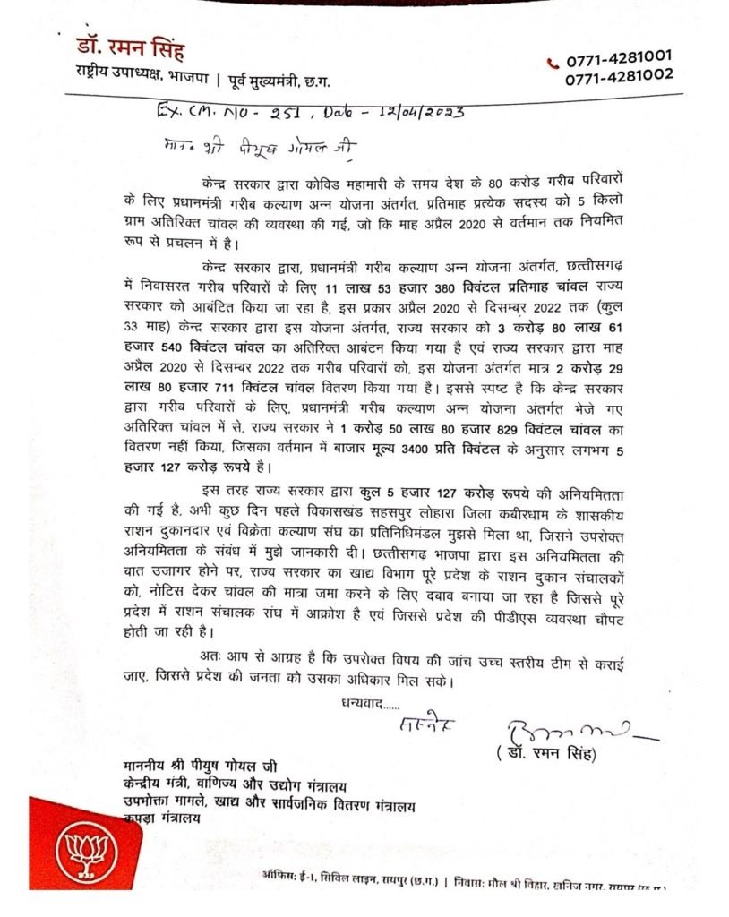 अब देखना ये है कि छत्तीसगढ के खाद्य मंत्री अमरजीत भगत का विभाग इस पर क्या कर पाता है।पिछले महीने ही ‘पहल’ ने खाद्य मंत्री अमरजीत भगत के एक निज कार्यालयीन कार्य के लिए रखे सचिव भूपेंद्र यादव के द्वारा सरगुजा ज़िले में किए गए बड़े भ्रष्टाचार का खुलासा किया था।