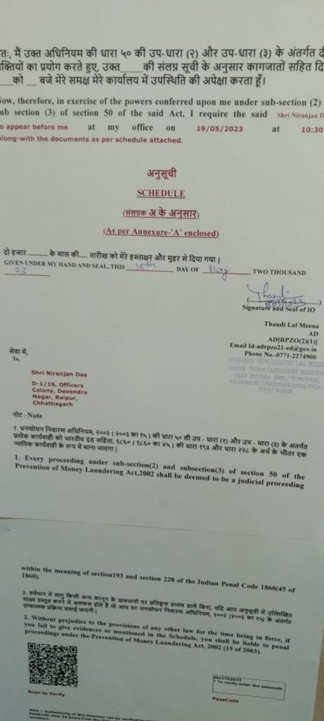 आबकारी विभाग के सचिव को ईडी ने अपने कार्यालय में उपस्थित होने का नोटिस जारी किया संविदा में नियुक्त यह प्रमोटी आईएएस निरंजन दास आखिर हैं कहां?