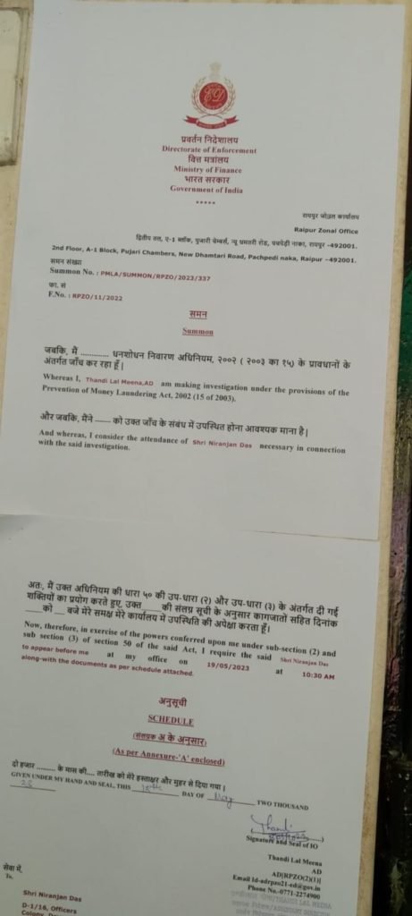 इसी मामले में ईडी के द्वारा कल रायपुर के ईडी कार्यालय में संसदीय सचिव चंद्र कुमार राय से भी देर रात तक लगातार कड़ी पूछताछ के संकेत मिले हैं।