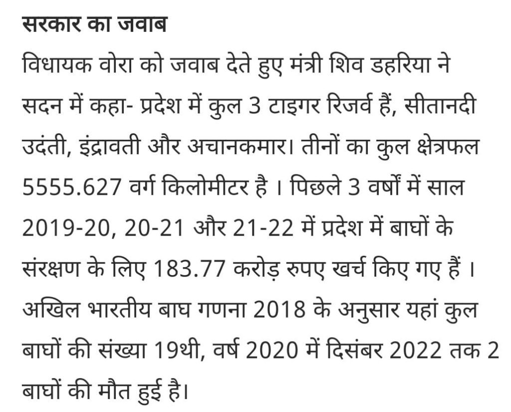 प्रदेश सरकार बताए, बाघों पर 183 करोड़ से ज्यादा रकम कहां खर्च की गई?