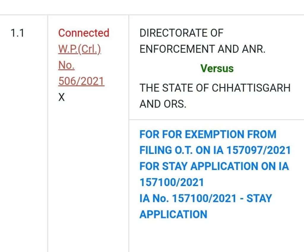 गौरतलब है कि छत्तीसगढ के 36000 करोड़ के नान घोटाले को लेकर ईडी ने छत्तीसगढ सरकार के दो वरिष्ठ अधिकारी अनिल टुटेजा और डाॅक्टर आलोक शुक्ला के विरूद्ध उच्चतम न्यायालय में एक अर्जी दी थी कि इस मामले की सुनवाई राज्य से बाहर हो क्योंकि मामला संगीन है और आरोपी बड़े पद पर हैं।