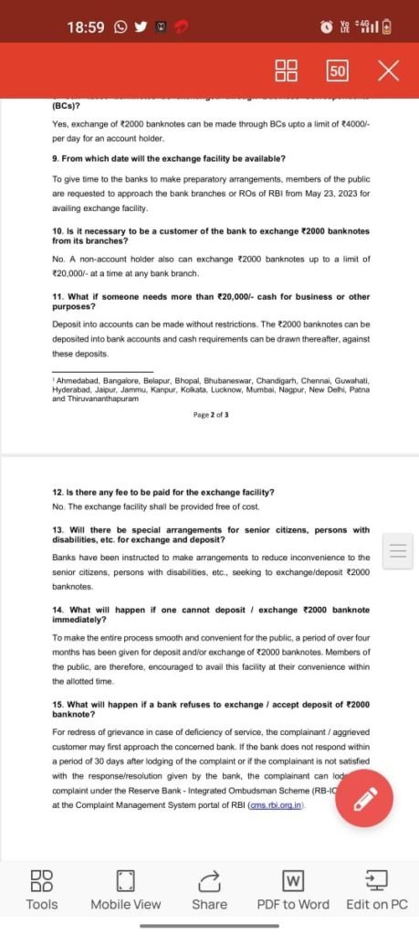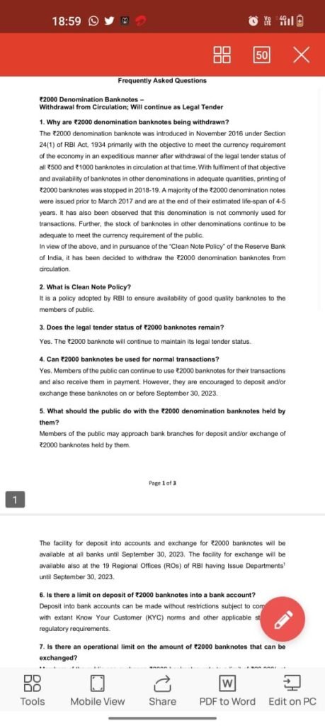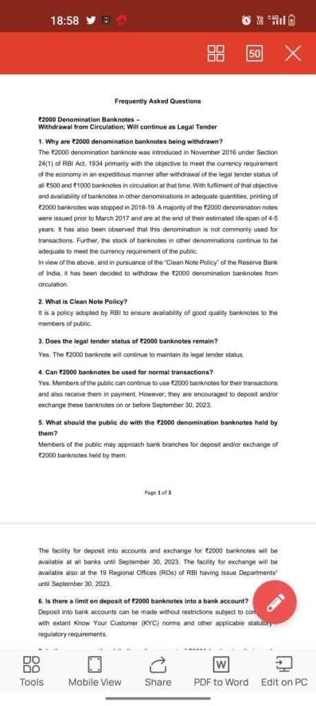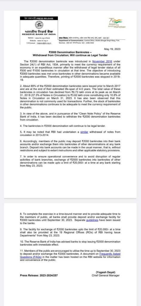 RBI to withdraw Rs 2,000 currency notes from circulation; the notes will continue to be legal tender till September 30: