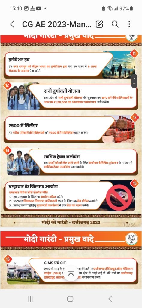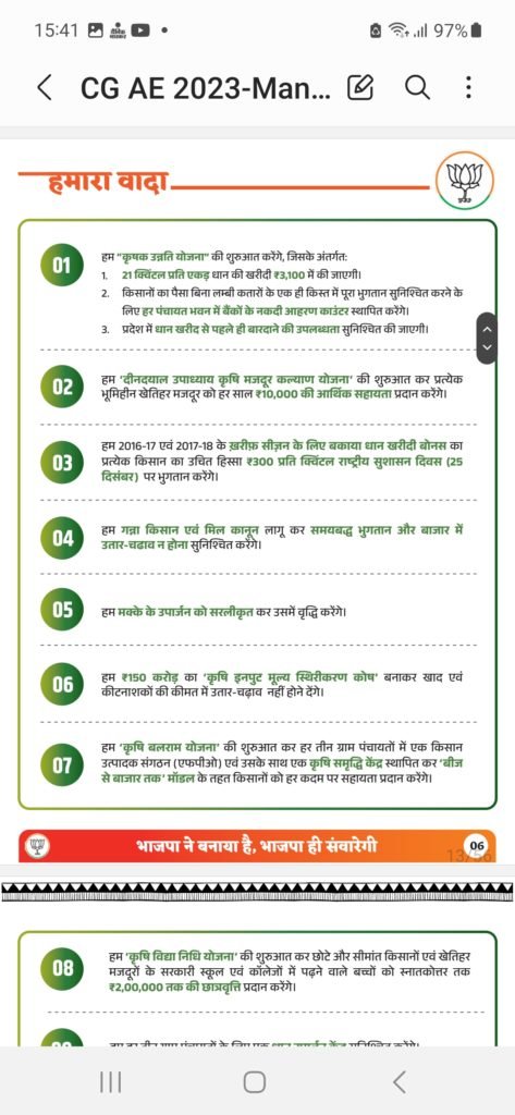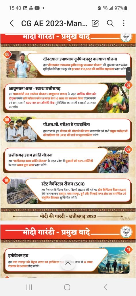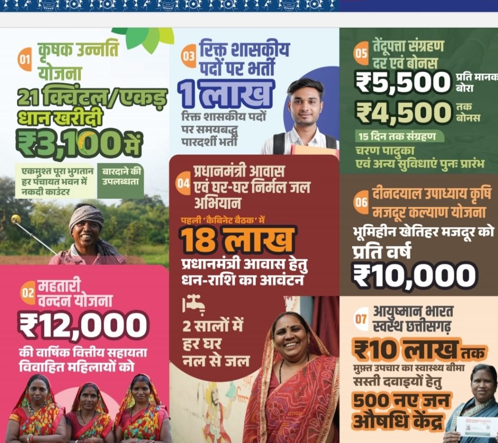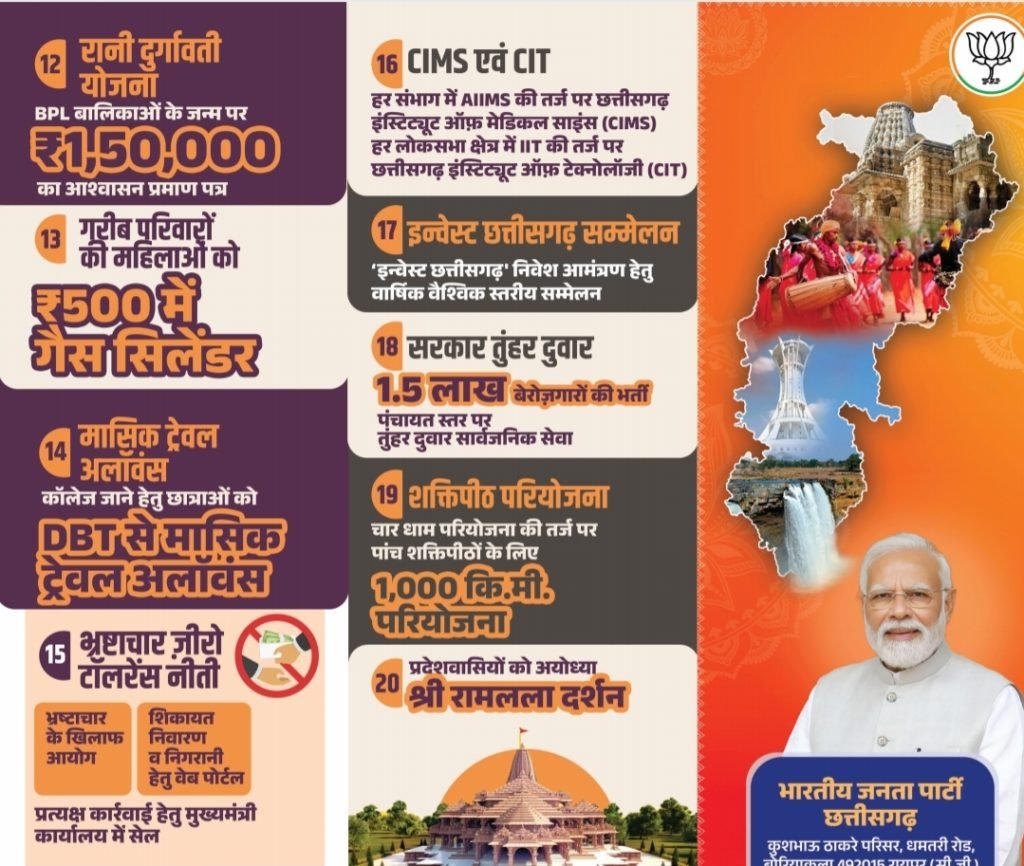 छत्तीसगढ़ में भाजपा ने आज घोषणा पत्र जारी कर धान के लिए और तेंदुपत्ता के लिए बड़ी घोषणा की साथ ही पी एस सी परीक्षा में पारदर्शिता की बात को शामिल कर भ्र्ष्टाचार पर भी कड़ी कार्यवाही के लिए घोषणा की!
