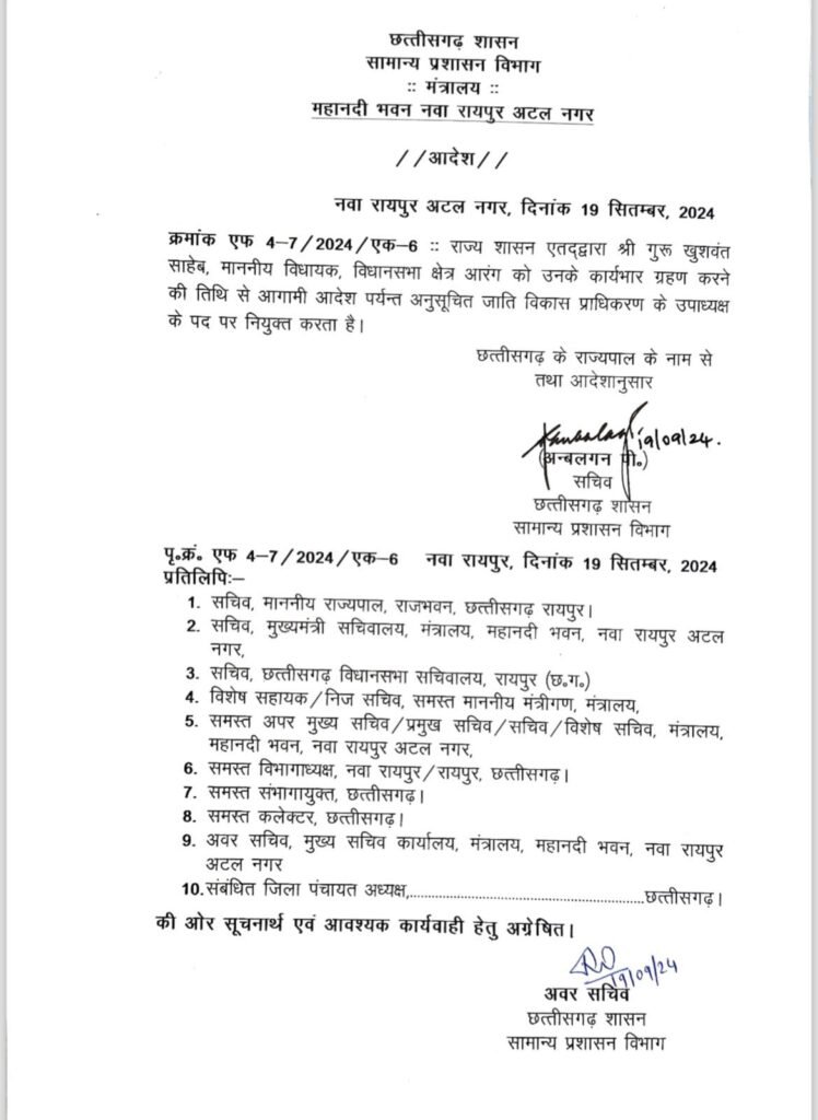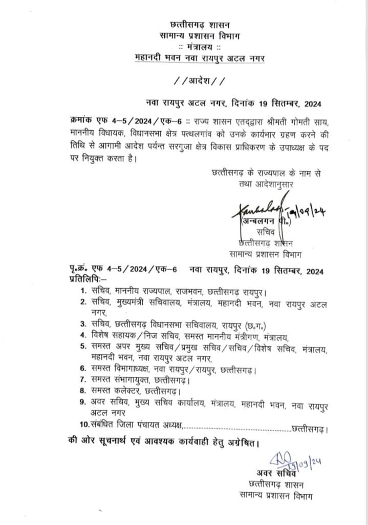 गोमती साय को और गुरू खुशवंत को पद मिला है।