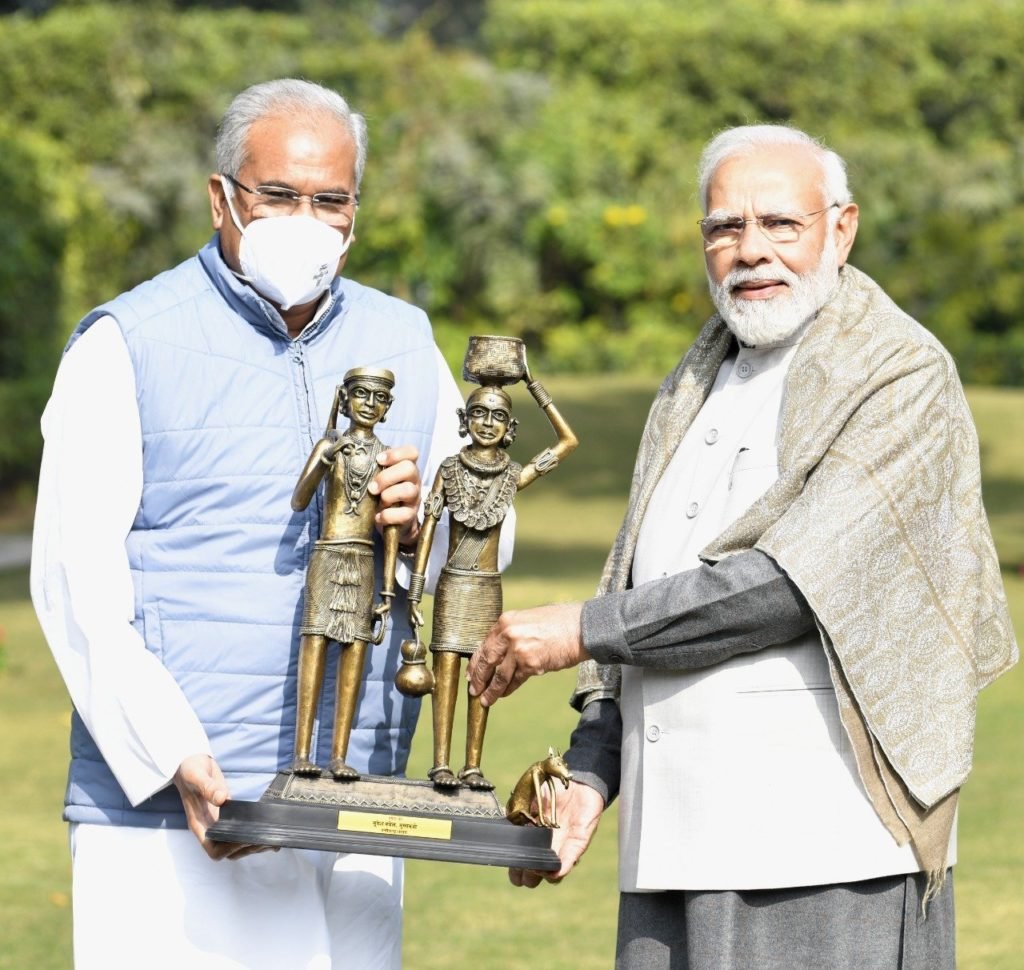 छत्तीसगढ़ के मुख्यमंत्री भूपेश बघेल और प्रधानमंत्री नरेंद्र मोदी के बीच लंबी मुलाक़ात । लगभग 1 घंटे तक चली मुलाक़ात ।