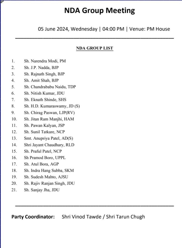 7 जून को एनडीए के सांसदों के साथ बैठक के बाद