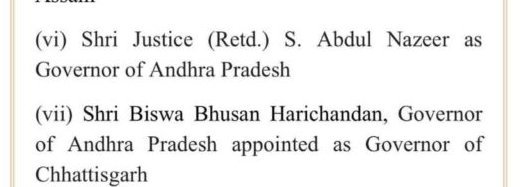 रामजन्म भूमि और बाबरी मस्जिद केस में राम जन्म भूमि के पक्ष में,ट्रिपल तलाक को असंवैधानिक करार देने वाली पीठ में शामिल रहे और नोटबंदी को उचित बताने वाले महत्वपूर्ण निर्णय सुनाकर सुर्खियों में रहे उच्चतम न्यायालय के पूर्व न्यायाधीश जो 2017 से 4 जनवरी 2023 तक उच्चतम न्यायालय में न्यायाधीश रहे,इन्हें आंध्रप्रदेश का राज्यपाल बनाने की ख़बर आज की सबसे चर्चित ख़बर रही है।