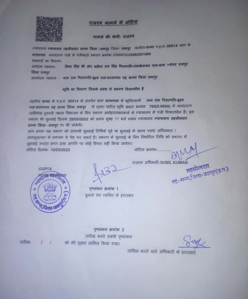 छत्तीसगढ के जशपुर ज़िले से बेहद चौंकाने वाली ख़बर सामने आई है।स्वामी – निशा सिंह पिता रामविचार नेताम,.रायपुर के द्वारा जशपुर जिले के बगीचा विकासखंड के सरधापाठ में