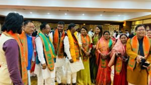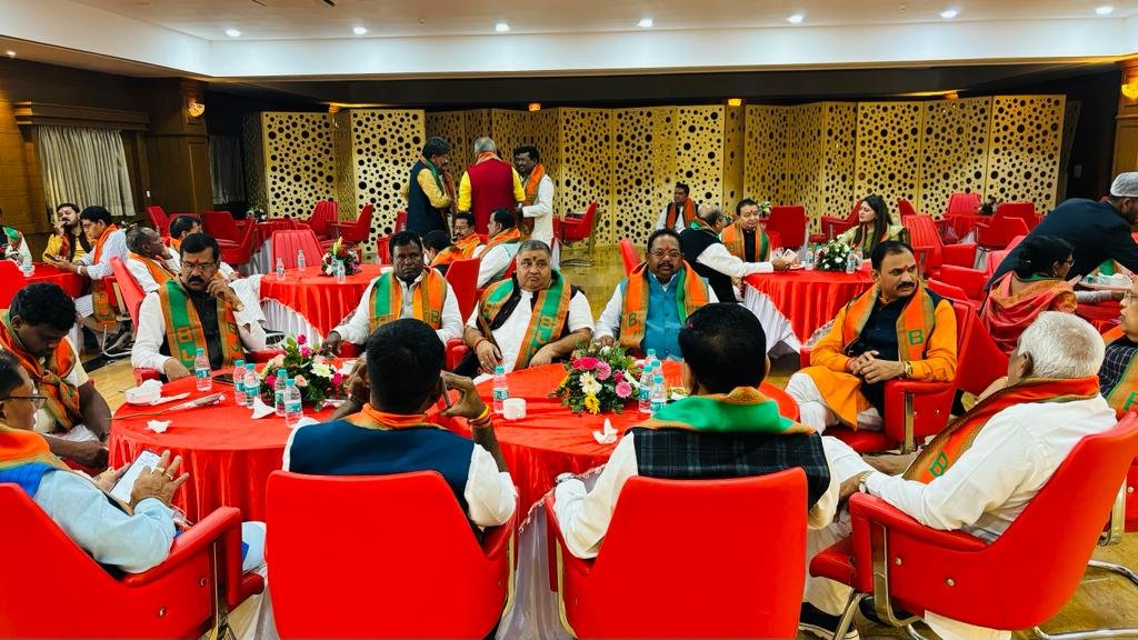 विधायक दल की बैठक में पर्यवेक्षक त्रय मुंडा, सोनोवाल व गौतम मौजूद