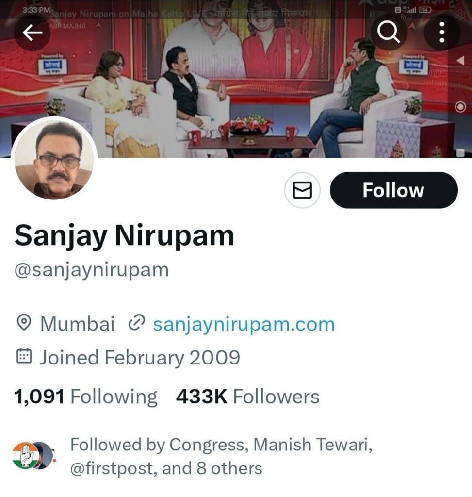 कांग्रेस के एक और दिग्गज नेता संजय निरुपम ने बीती रात अपने ट्विटर अकाउंट से A CONGRESSMAN को हटा दिया है।