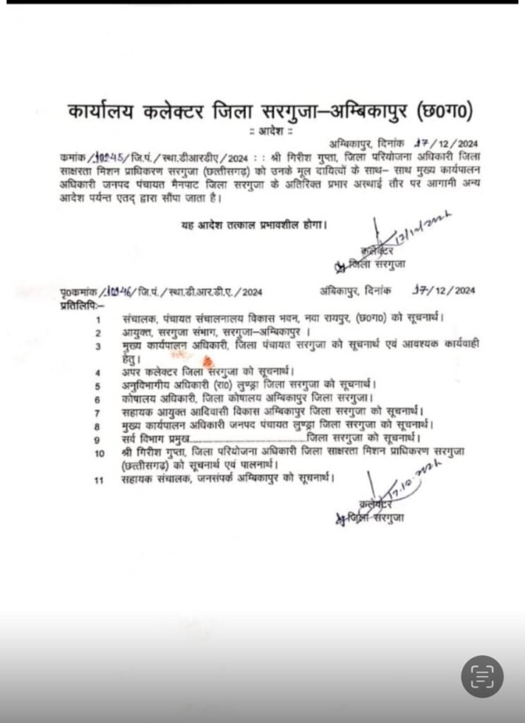 सरगुजा कलेक्टर का एक आदेश कई विभागों में चर्चा का विषय बना हुआ है।अधिकार क्षेत्र पर भी नियम को लेकर प्रश्न उठ रहे हैं।