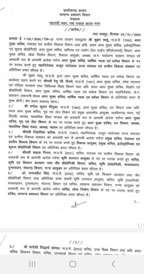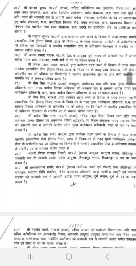 वहीं कई आई ए एस के प्रभार भी बदल दिए गए हैं!