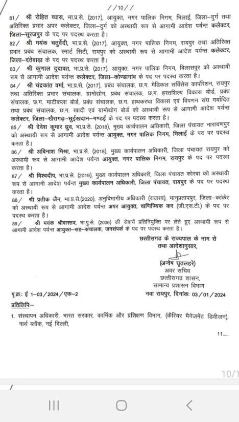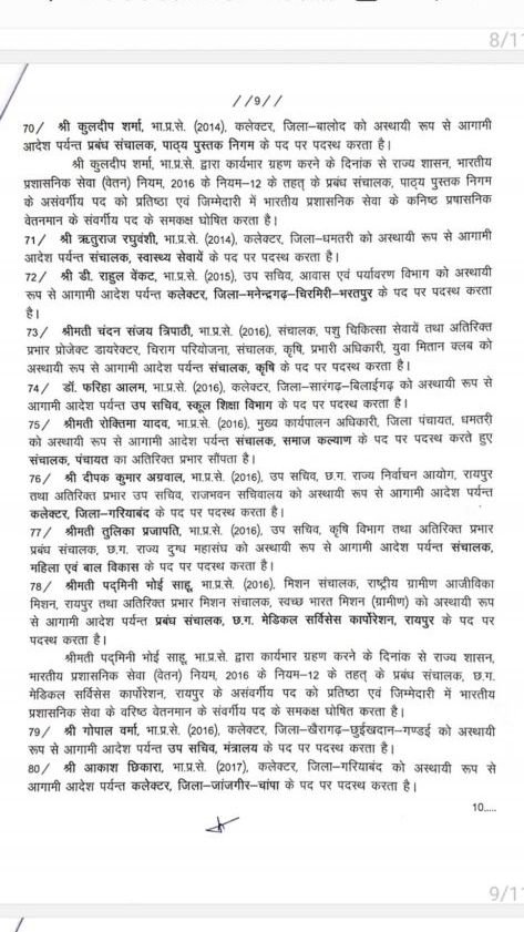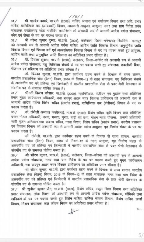 देर रात छत्तीसगढ़ में बड़ी प्रशासनिक फेरबदल करते हुए कुछ ज़िलों के कलेक्टर का तबादला कर दिया गया है!