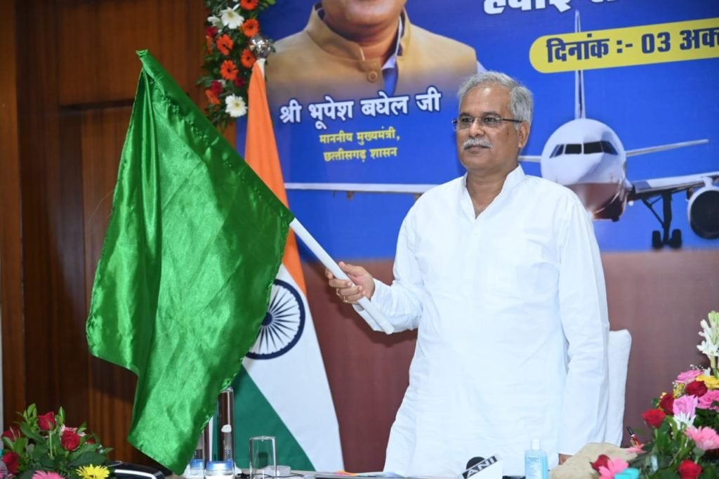 मुख्यमंत्री भूपेश बघेल ने बिलासपुर- इंदौर विमान सेवा के उद्घाटन अवसर पर बिलासपुर और इंदौर नगरवासियों को बधाई और शुभकामनाएं दी।