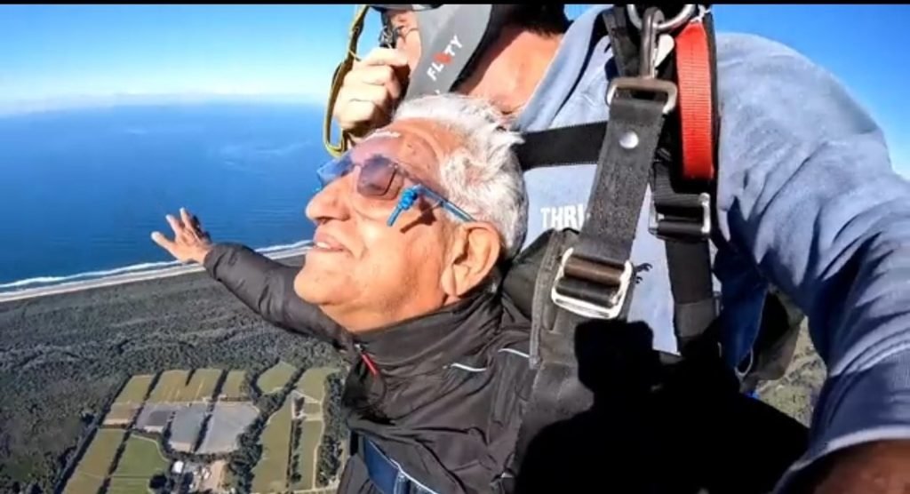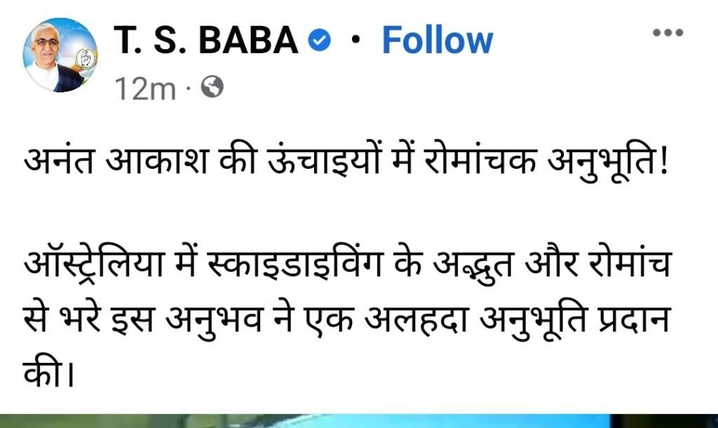 स्काइडाइविंग करते टी एस सिंहदेव।