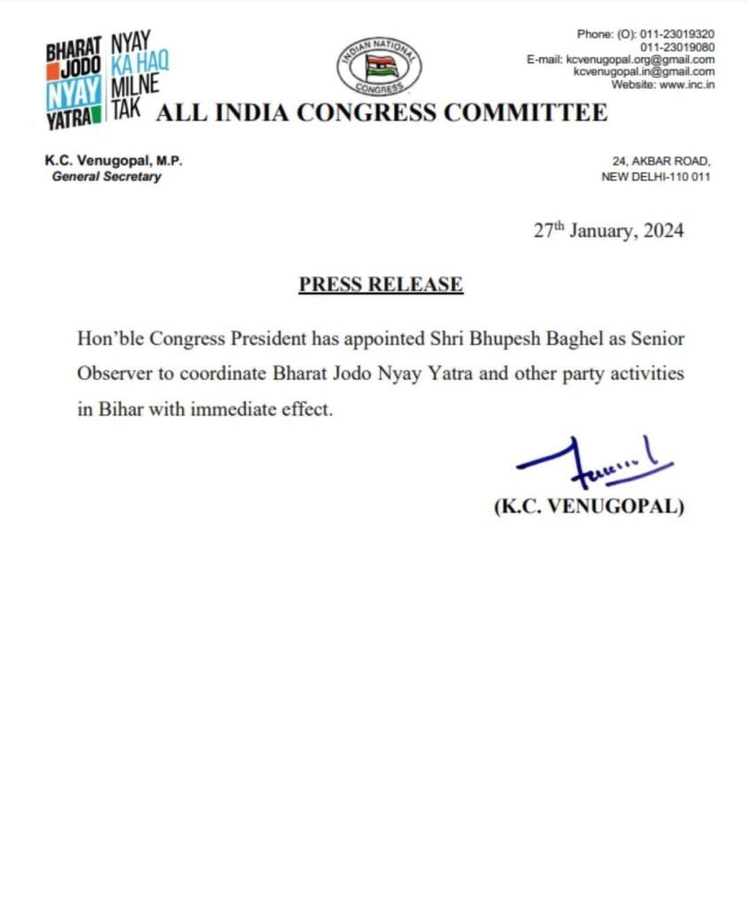 वहीं भाजपा के नरेश चंद्र गुप्ता ने पहल से कहा कि “जो बघेल खुद ईडी के केस में फंसे हैं और अपनी सरकार को छत्तीसगढ़ में बचा नहीं पाए ऐसे में बिहार में राजनैतिक दिगजों के बीच राजनीति के मंच पर एक हारे हुए और भरस्टाचार के मामले में फंसे हुए भूपेश बघेल को ये जिम्मेदारी ये संकेत है कि कांग्रेस में अब कोई नेता ही नहीं बचा है!”