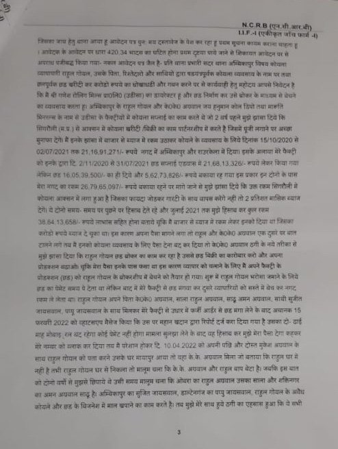 सरिया व्यवसायी पंकज अग्रवाल ने बताया है कि वो इन लोगों के झांसे में आकर करोड़ों रुपये के कर्ज में डूब गया है। व्यापार में मुनाफ़ा तो मिला नहीं उल्टे इन सब के कहने पर कोयला ऑक्सन में कोयले की नीलामी के लिए पैसा लगाया जिसमें इन सब ने शुरू में तो कुछ मुनाफ़ा कमवाकर पंकज अग्रवाल का भरोसा जीत लिया मगर बाद में बड़ी रकम लगवाई और ये रकम भी वापस नहीं की।